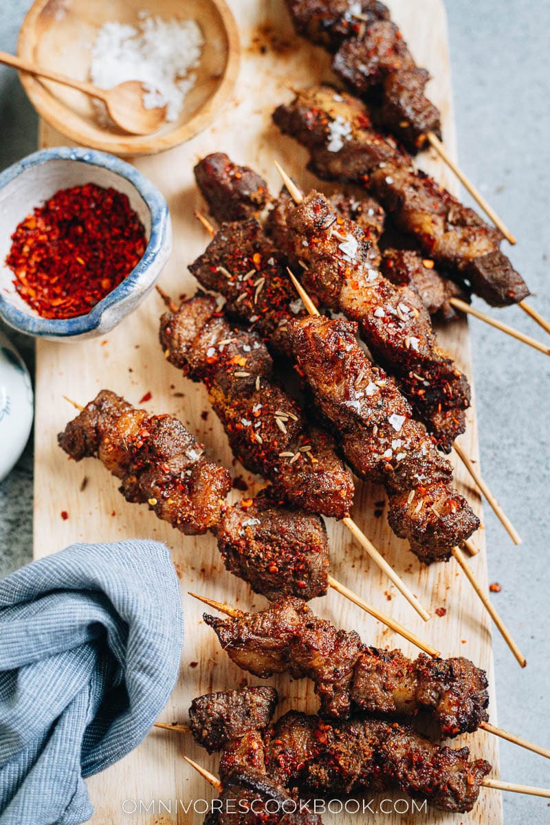 Chinese lamb skewers, or chuar (串儿), originally came from Xinjiang, the largest region in the northwest of China. It has become an iconic street snack in Northern China and I considered it a hometown food growing up in Beijing.