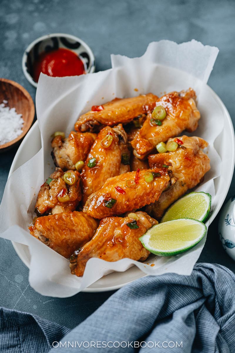 I enjoy serving some hot sauce and extra lime wedges on the side. A freshly squeezed lime adds more tangy flavor to the wings and balances out the sweetness. The hot sauce works beautifully in this recipe, as well, if you like a spicy taste.