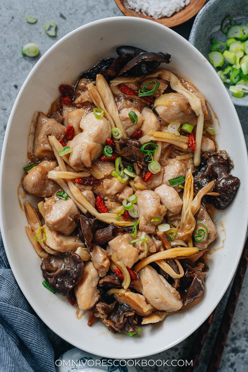 - The dried lily flowers, wood ear mushrooms and goji berries add texture and color to the dish. They are great if you happen to have them on hand. Otherwise you can totally skip them and just enjoy the chicken by itself.