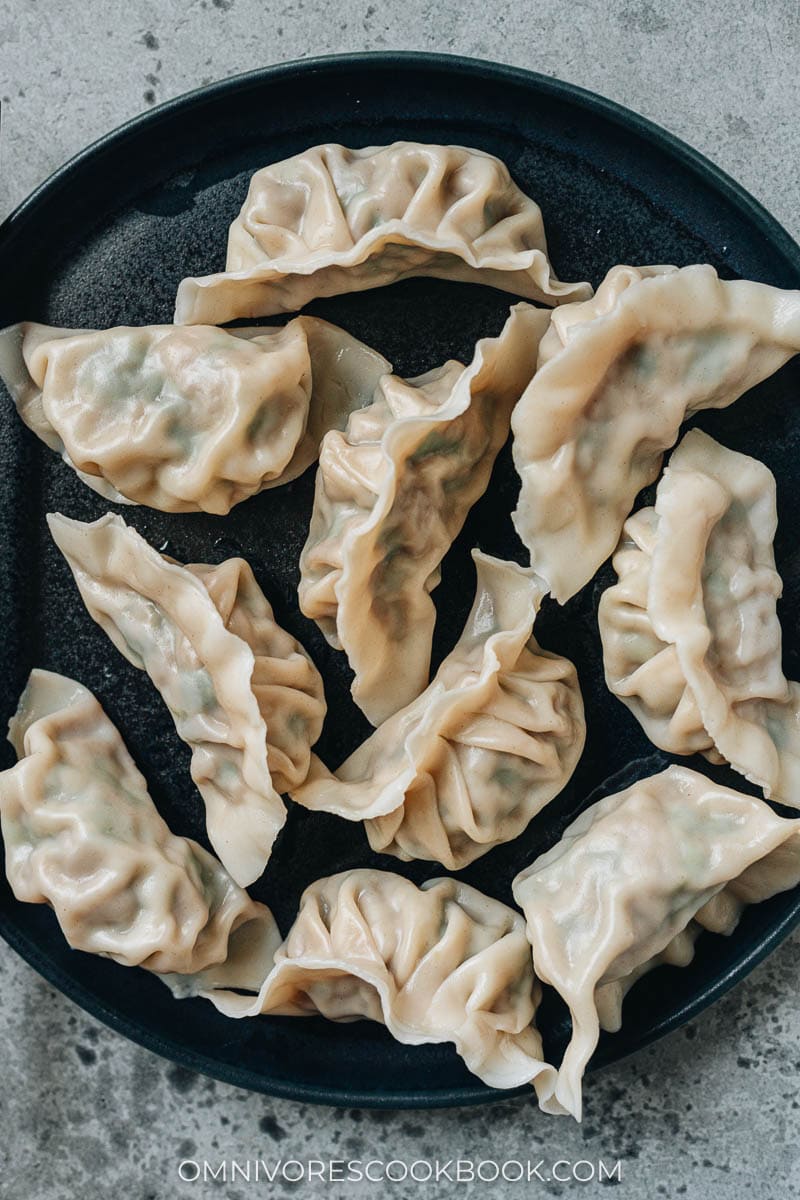 Boiled dumplings are made with cold water dough. This recipe shows you how to make the dough and the dumpling wrappers from scratch.