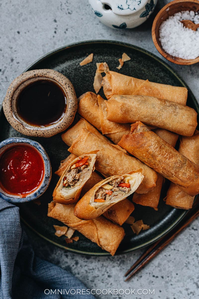 These Cantonese chicken egg rolls show you the beauty of authentic Chinese food. They use the perfect combination of meat, savory dried foods, colorful veggies, and a well-balanced sauce to release the ultimate umami. I learned this recipe from a famous Hongkongese dim sum chef. And it’s quite different from the takeout style chicken egg rolls that are filled with cabbage and chicken. This is a must-try if you’re into real Chinese food.
