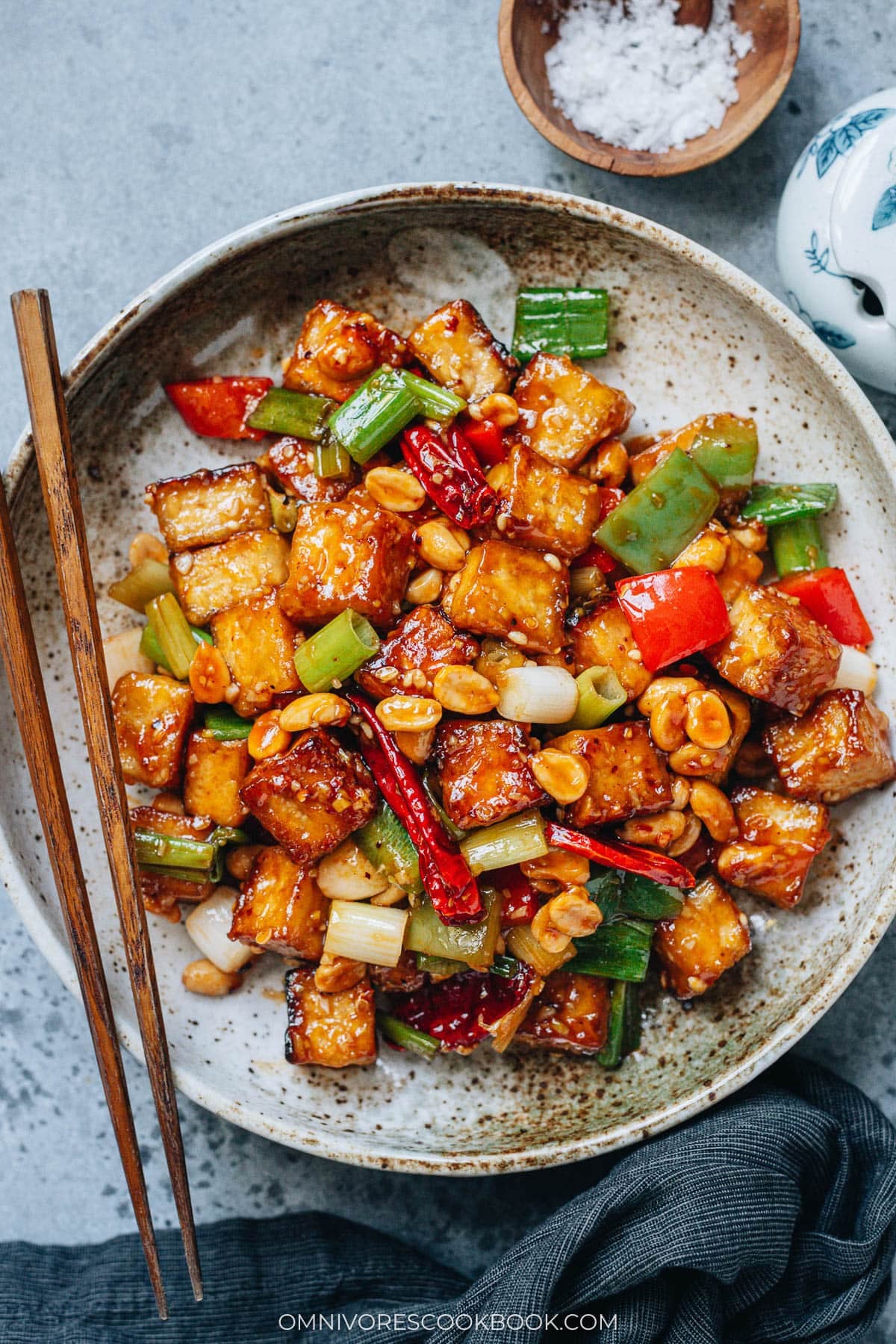 While chicken is the classic protein when it comes to kung pao dishes, tofu is a common variation. Tofu has long been a staple in Chinese kitchens, not as a “meat replacement,” but as a versatile ingredient with its own character. For example, tofu is often cooked as a main ingredient with some meat to enhance the flavor, such as mapo tofu and pork stuffed tofu. It’s often added to soups for texture, such as hot and sour soup and West Lake beef soup.