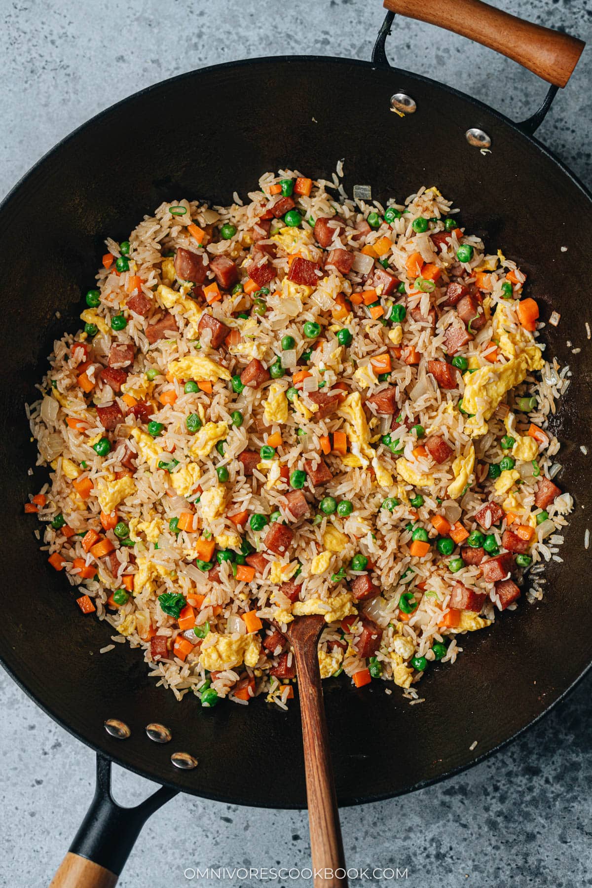After moving to the US, I was surprised to find that Spam often gets a bad rap here. But back in China, it’s a beloved ingredient for hot pot, dry pot, and everyday cooking. Just like you might choose different types of protein or tofu for your bowl or stir fry, Spam, or luncheon meat (午餐肉), is often offered as one of the proteins that you can add to your dish. When you cut it up and pan fry it until golden crispy, it adds an unbeatable umami depth to fried rice that regular ham and bacon just can’t replicate.
