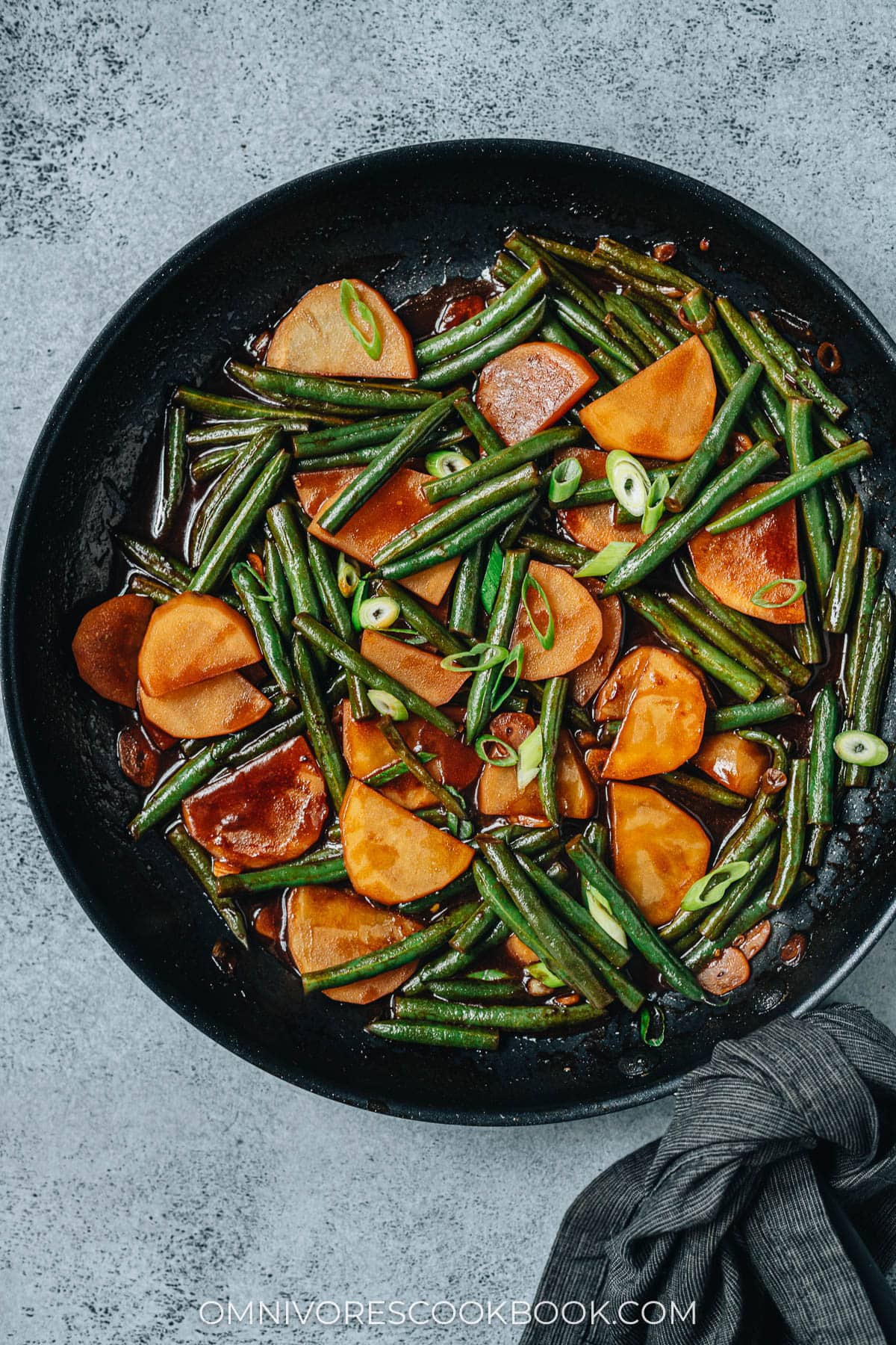 This Northern Chinese style green bean and potato stew is a great side dish to pair with many other mains, soups and appetizers for dinner. You can also serve the stew with steamed rice, just like we eat it in China. If you want to make this one as a main dish, you can brown some ground meat (pork, beef or chicken all work) before adding the sauce. The meat adds more flavor to the sauce and makes the dish a satisfying main.