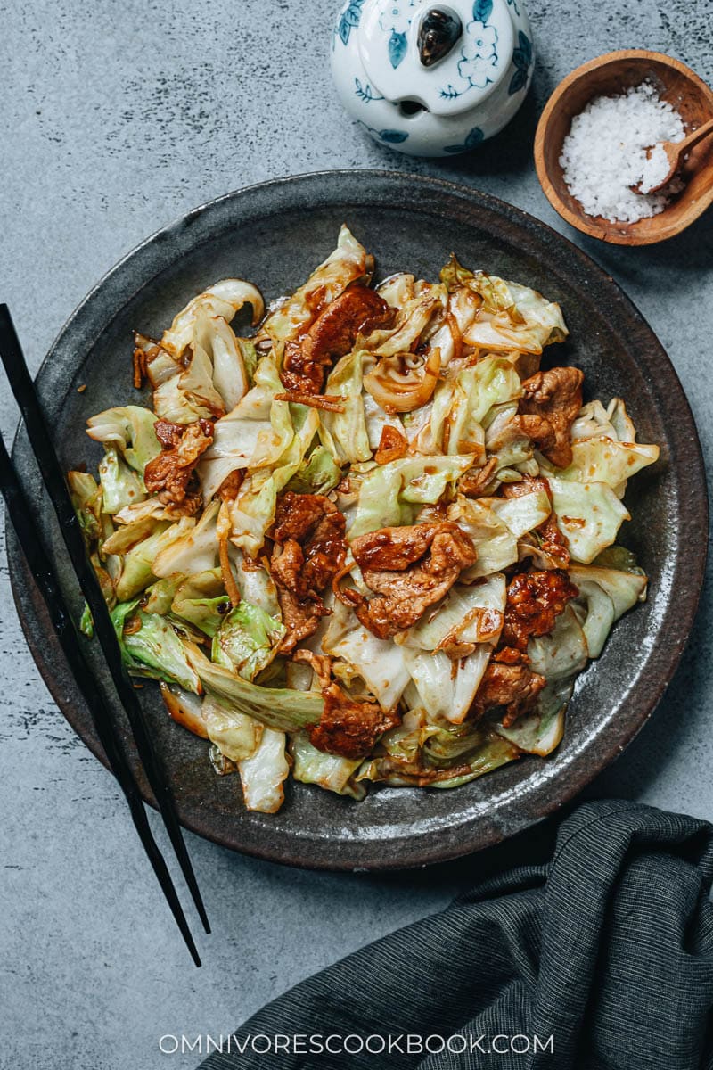 Depending on the type of cabbage you use, you will need to adjust the cooking time. If using Taiwanese flat cabbage, you will need much less time since this cabbage is tender and can easily be overcooked. If using regular cabbage, especially a bigger head, the leaves can be very tough and take a longer time to cook. You might also need to turn the heat lower so the leaves won’t be overly charred.