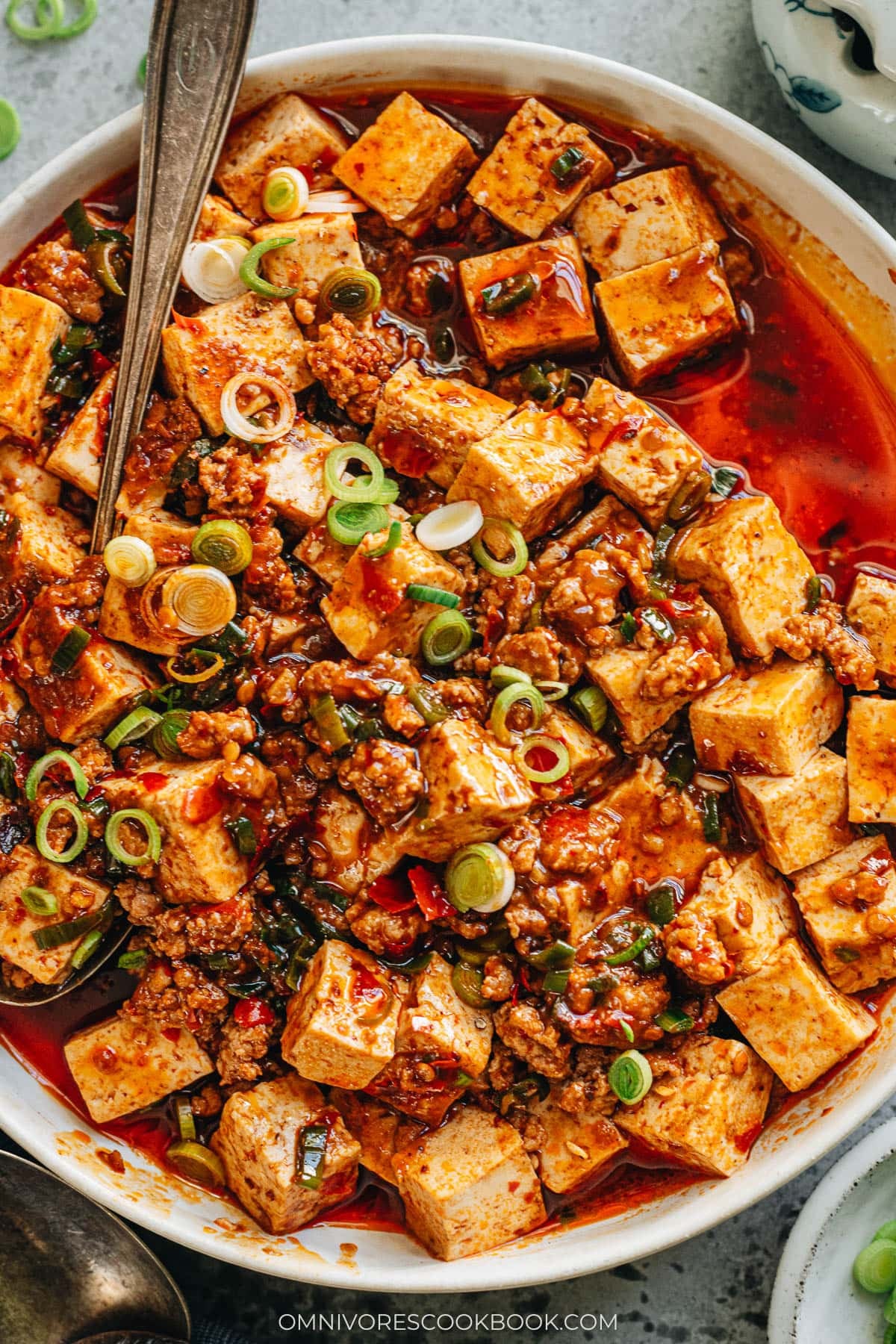 This dish can also use extra firm, firm, or medium tofu, which is much easier to handle. Plus, once you braise the tofu in the rich, spicy sauce, it absorbs a lot of flavor and tastes great.