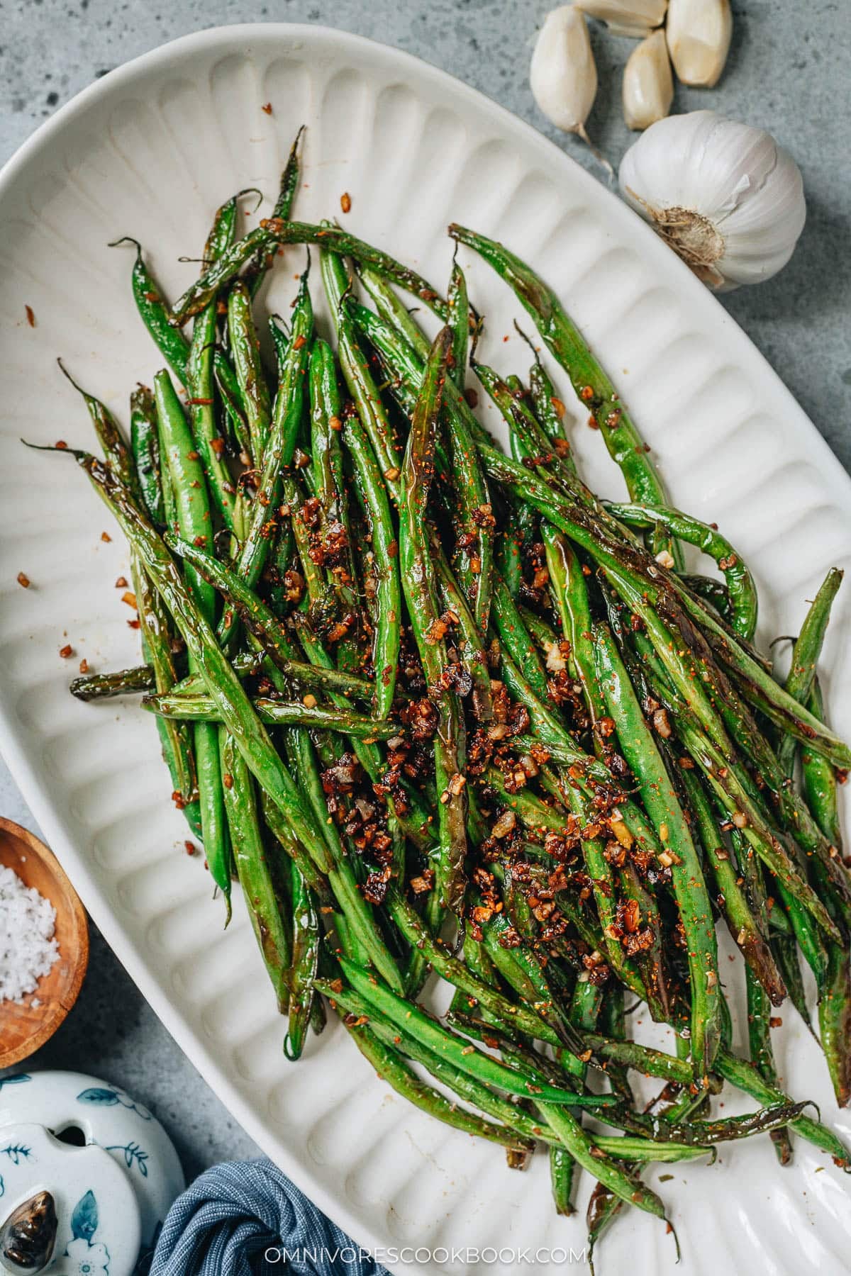 Chinese-style garlic green beans use a cooking technique called Gan Bian (干煸), meaning “dry fried”. It’s similar to shallow frying, as it uses little oil, but achieves a result similar to deep fried food.