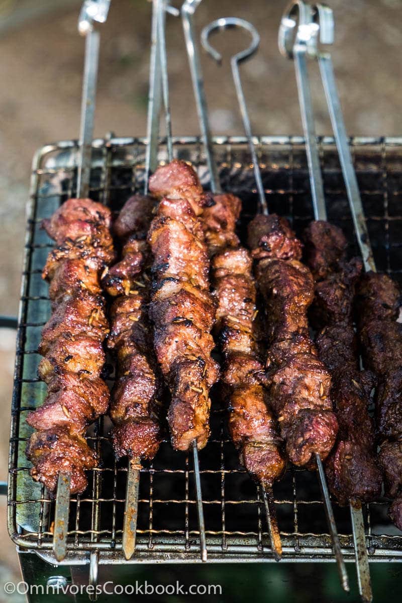 Always try to marinate the meat for a couple of hours in advance, so the seasoning will penetrate deeper. If you don’t have enough time, you can still marinate the skewers for 30 minutes right before cooking.